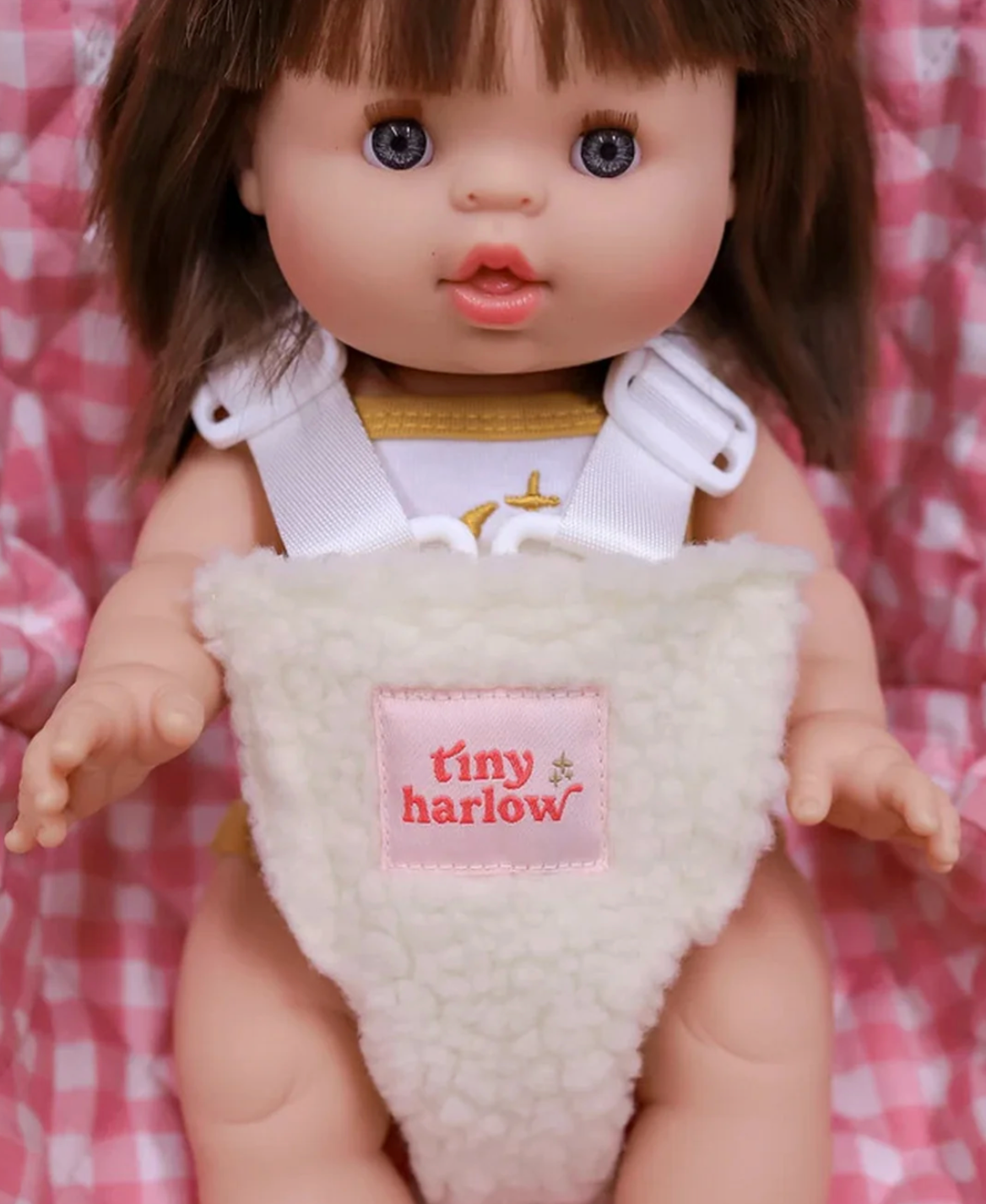 Craquez pour la coque vichy rose Tiny Harlow, l’accessoire indispensable pour transporter les poupées avec style et douceur. Inspirée des cosy pour bébés, cette coque de poupée au look bohème est parfaite pour les petits parents en herbe !