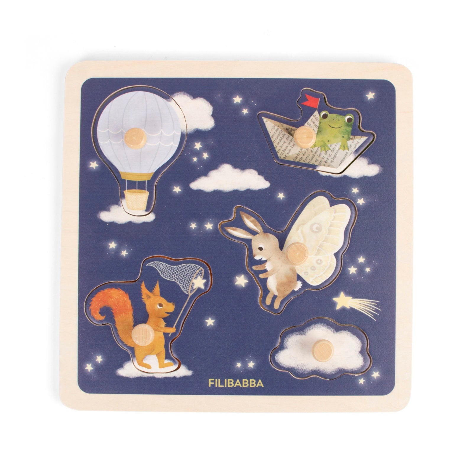 Initiez votre tout-petit à un monde de découverte tactile et de jeu imaginatif avec le puzzle sensoriel en bois de FILIBABBA. Conçu pour les petites mains, ce puzzle captivant transforme le temps de jeu en un voyage sensoriel, où chaque pièce offre une délicieuse surprise. C'est plus qu'un simple puzzle : c'est une aventure dans les formes, les textures et l'apprentissage précoce., , Le puzzle en bois comprend 5 grosses pièces, chacune cachant un tissu sensoriel en dessous qui correspond au motif de la pièce. Les boutons robustes facilitent la préhension des petits doigts, aidant ainsi à développer la motricité fine et à renforcer la prise en pince.