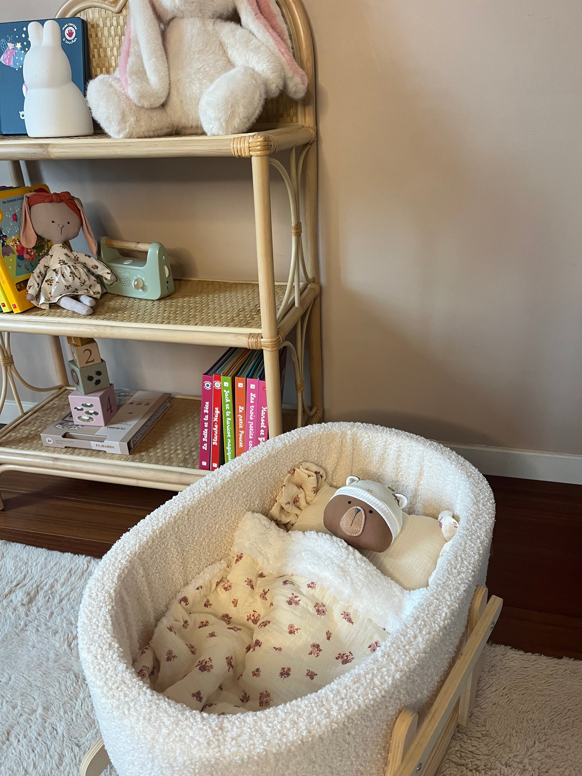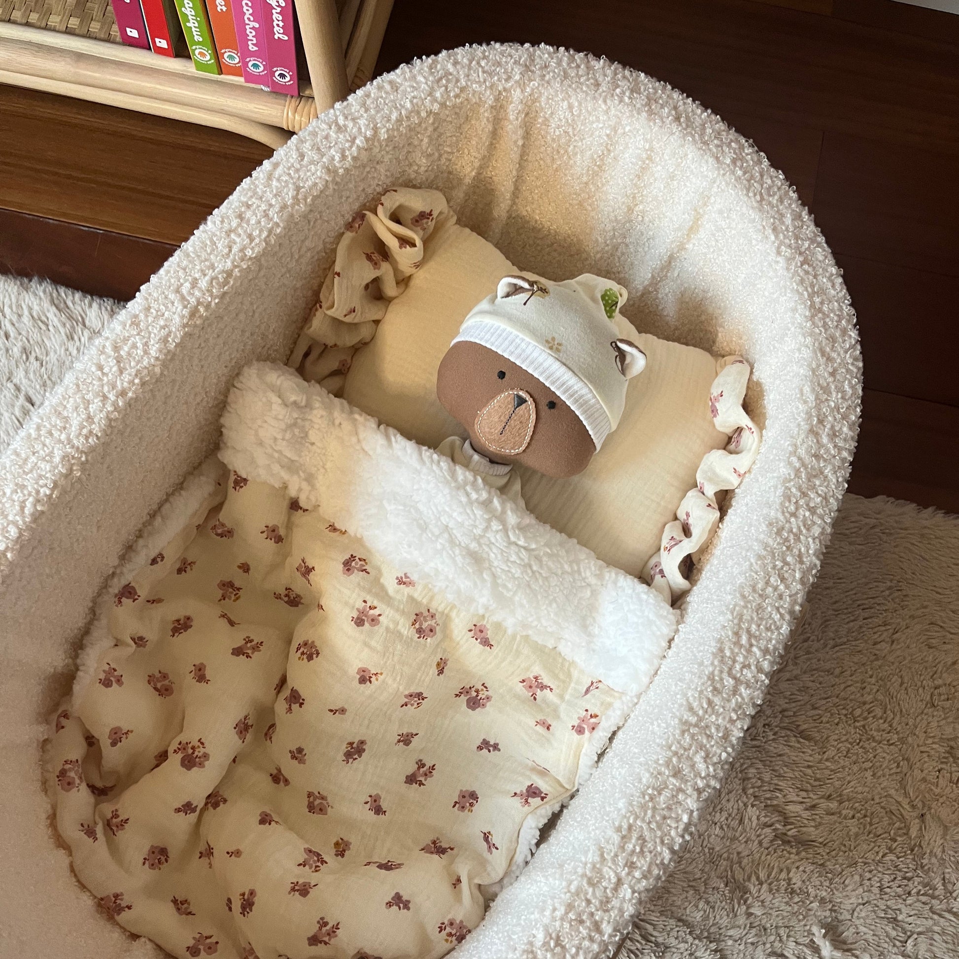 Ce joli set comprend une couverture moelleuse et un oreiller assorti, ce dernier décoré de froufrous sur les côtés. Conçu spécialement pour les poupées (jusqu'à 50 cm environ), il transforme chaque moment de jeu en une douce parenthèse cocooning.